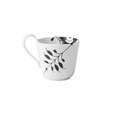 Very beautiful mug with handle from Royal Copenhagen from the Black Fluted Mega collection The mug is made of porcelain in the colour white-black This mega series is a reissue of the world-famous musselmalet pattern from the house Royal Copenhagen Mega black ribbed is as timeless and elegant as the other musselmalet versions The mug has a capacity of 33 cl, is dishwasher and microwave safe