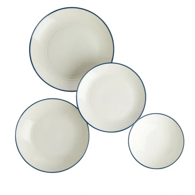 From a delicious snack, to a full roast dinner, to your favourite pasta dish, refresh mealtimes with this Gordon Ramsay Maze Denim Line 16 Piece Dinner Set. Comprising four dinner plates, four side plates, four pasta bowls and four cereal bowls, each one is crafted from stoneware featuring the Maze circular design and contrasting blue denim glaze line around the rim. Designed to layer with existing pieces of Maze for a cool, casual look at mealtimes. Don’t forget the matching mugs.