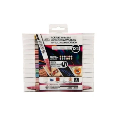Premium Quality Acrylic Markers - These premium acrylic markers offer supreme versatility and control for any project. Multi-Surface - These acrylic markers can be utilized on various surfaces such as canvas, glass, fabric, wood and more. Quality Tips - This set features 12 vibrant metallic coloured dual tip (1.0mm) round & brush acrylic markers. Artists can use these dual tips to create round edges and bold strokes. Creative Inspiration: Perfect for artists and crafters of all levels, from beginners to advanced.