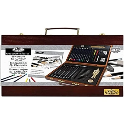 Deluxe Wooden Carry Box with Handle Contains everything you need to start sketching & drawing Includes Charcoal Pencils, Graphite Pencils & Colour Pencils Accessories include Mannequin, Colour Sticks, Blending stump & Much More Dimensions : W33cm x H26cm x D5cm