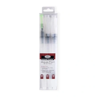 Royal & Langnickel Essentials Aqua Flo Plastic Refillable Brush Pens, Sizes 4, 7, 10.