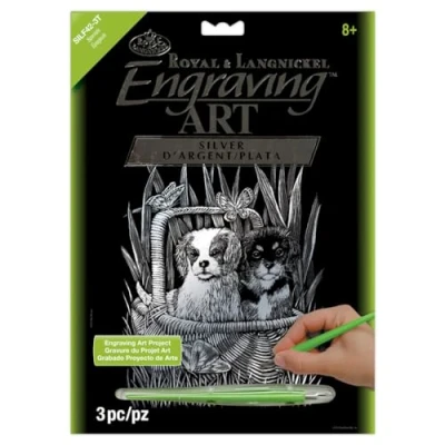 Engraving Art makes it easy to begin scraperboard artwork! Simply use the tool in the kit to scrape away the preprinted design, revealing the foil below. Artwork Dimensions: 8 in x 10 in (203 mm x 254 mm).