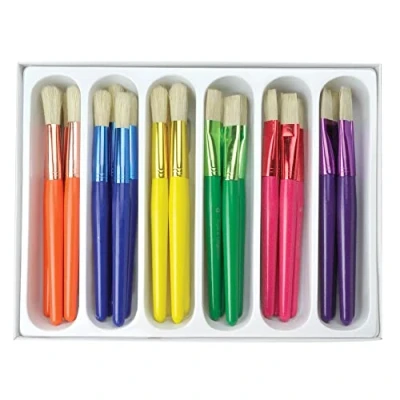24 piece set of round and flat brushes for large area drawing and small detail work Round and Flat Paint Brushes Size 4 Brush Set with Durable Multi-Color Taklon Bristles Made of Polyester and Seamless Aluminium Ferrule, Suitable for First Painting Thanks to the soft brush handle, all brushes fit well in small children's hands, this makes painting easier and trains their fine motor skills Suitable for water, acrylic and oil paints, brushes are easy to clean, suitable for working with different painting techniques For children, adults and hobby artists for creative drawing, in everyday school life, in leisure time or in kindergarten, these brushes provide great colouring fun, Weight: 0.1984160358 pounds, Manufacturer: Royal Brush Manufacturing