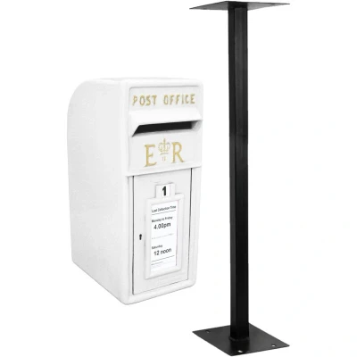 Royal Mail Post Box with Floor Stand ER Cast Iron Wall Mounted Wedding Authentic Pillar Replica Lockable Office Letter White