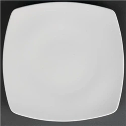 270mm/ 10 ¾". Porcelain. White. Colour: White. Shape: Square. Oven, Microwave and dishwasher safe. We are able to supply individual sample pieces of this crockery, at a small cost, please phone for further details.