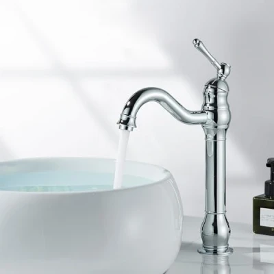 Rozin Bathroom Basin Vessel Tap 360 Swivel Spout High Faucet Brass Single Lever Chrome Polished Cold and Hot Water Mixing