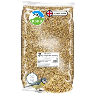 RSPB Wild Bird Seed Mix, Food with Premium Ingredients, Made in the UK, Healthy and Nutritious, Suitable for Year Round Feeding (High Energy No Mess) (Wheat Free) (20kg)