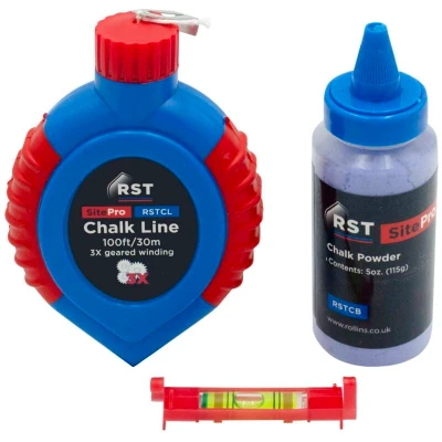 General description The RST Chalk Line is designed for marking straight lines between two points. It features a durable construction suitable for daily use and is ideal for both interior and exterior projects. Technical specifications Line length: 30 meters (100 feet) Winding system: 3x geared for faster rewind Case material: High-impact ABS plastic Compatibility and accessories Includes a level for precise alignment Supplied with brightly colored chalk powder in a squeezable bottle with an easy-pour spout Installation No installation required; simply unwind the chalk line and stretch between two points. Usage Pull out the desired length of line and secure it at both points Use the level to ensure proper alignment Snap the line to leave a straight chalk mark