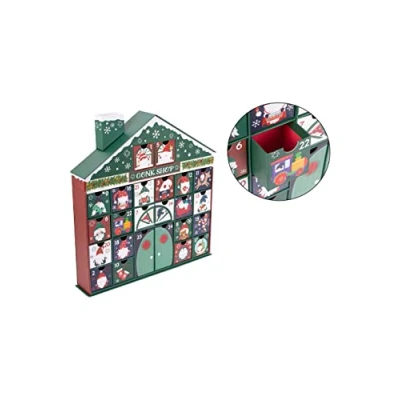 General description This gorgeous 3D Christmas Countdown Advent Calendar is a delightful gift for both children and adults. Styled in the shape of a house, it features adorable festive gnomes in a Christmas setting. The calendar includes 24 square pull-out gift boxes, perfect for storing chocolates, candies, and small toys, creating a warm Christmas atmosphere when displayed. Technical specifications Size: 41x38.5x6.5 cm Material: Triple-mounted folding cardboard Each pull-out box measures 6x6 cm (with 2 tall boxes measuring 12x6 cm) What's included 1 large 3D Advent Calendar in the shape of a house 24 square pull-out gift boxes