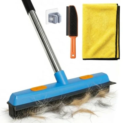 【Efficient Cleaning Power】 This upgraded rubber broom with rubber brush bristles offers exceptional efficiency in picking up pet hair, dust, and dirt from floors, carpets, and rugs. Compared to traditional broom indoor styles, this carpet brush for cleaning ensures deep-cleaning performance for both indoor and outdoor use. Perfect as a pet hair broom carpet or rubber carpet brush for households with pets. 【Built-in Pet Hair Remover & Mop Functionality】 The detachable pet hair brush for carpet can be used as a handheld cleaner for upholstery and clothes. Includes a soft towel mop cloth for scrubbing tiles or windows. The set also features a convenient wall-mounted rubber hand brush hook for space-saving storage. This pet brush for carpet is perfect for use on bedding, stairs, and vehicle interiors. 【Adjustable Handle Design 】 The rubber broom for pet hair carpet comes with a stainless steel handle adjustable from 40 to 149 cm, allowing easy switching between handheld and upright use. Whether cleaning hard-to-reach corners or large areas, the pet broom adapts to your needs, providing excellent reach and flexibility. Ideal as a rubber floor brush or kitchen brush floor option. 【Ergonomic & Durable Build】 Designed with user comfort in mind, this silicone broom offers a 45° ergonomic grip to reduce pressure on wrists and knees. The rubber sweeping brush head resists deformation, is waterproof, and easy to rinse. Built to last, this better brush rubber broom stands up to repeated use on multiple surfaces. 【Multi-scene Versatility】 Perfect for homes, kitchens, bathrooms, gardens, balconies, garages, and windows, this all-in-one rubber brush for pet hair set handles indoor and outdoor messes with ease. Use it as a dog hair carpet brush, carpet cleaning brush, or silicone brush for floors. Whether you're dealing with hair, mud, water, or dust, this floor brush indoor system is your reliable companion.