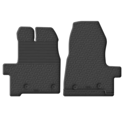 Custom-fit, suitable for Ford Transit Custom - please note: only for Left-Hand-Drive cars 2-piece set - front Original Gledring G-pattern design 13 mm raised edges trap dirt, mud, and liquid spills High-quality, flexible rubber with an anti-slip surface