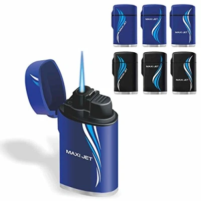 Rubber Maxi Jet Zenga Lighter, Windproof Electronic Refillable Gas Turbo Blowtorch Transparent See Through Clear (Black)