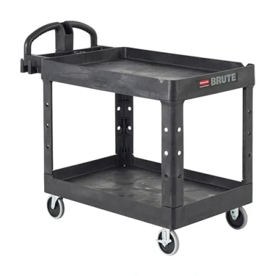 ADVANCED MATERIAL CONSTRUCTION: High-density structural foam construction makes this two-self rolling cart sturdy, lightweight, and maneuverable; it also won’t rust, dent, chip or peel. PERFECT FOR THE HEAVIEST LOADS: This service cart with wheels is perfect for transporting materials, supplies, and heavy loads in almost any environment. Structural foam provides more durability than other materials, offering 500 pounds of storage weight capacity. EASY MANEUVERABILITY: Ergonomically designed push cart handle provides optimum hand placement and push height improving control and worker safety. Navigate warehouses, classrooms, loading docks, or stock rooms with ease. SPECIALLY DESIGNED WHEELS: 5-inch non-marking thermoplastic rubber swivel casters absorb shock, provide floor surface protection, and quiet operation. Excellent on linoleum, tile, terrazzo, wood, smooth concrete, and carpet. PEERLESS CUSTOMIZATION: Molded-in storage compartments, holsters, hooks, and notches, customizable fittings, and easy-access bottom shelf make space for all your tools and keep them close at hand. Plus, built in V-notch holds pipe securely for safe cutting. MADE IN USA: Recognized as a “Brand of the Century”, Rubbermaid is one of only 100 companies named as having an impact on the American way of life. Rubbermaid Commercial Products are made in Winchester, Virginia. 1 YEAR WARRANTY: Rubbermaid warrants to the original owner that this product is free from defects in material and workmanship for a period of one year from the date of the original purchase. DIMENSIONS: 39" x 17.9" x 33.25"
