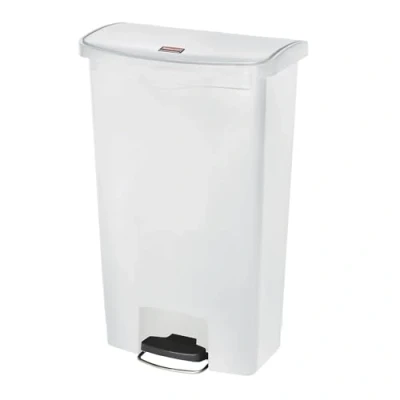 Rubbermaid Commercial Products Slim Jim Step on Resin Front Waste Receptacle Bin 68 Litre White 1883559