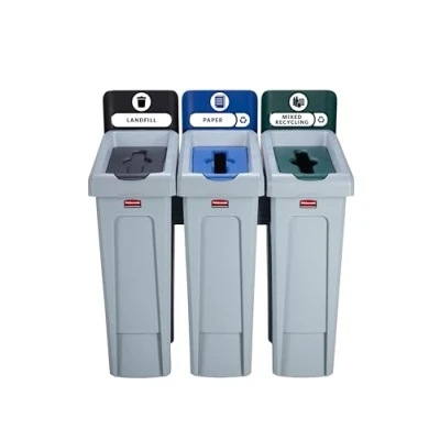 Slim Jim Recycling Station bundle - labels sold separately Adaptable recycling solution offers a front-of-house look with smart functionality Customised recycling - choose from 7 colours and 4 lid openings to customise a recycling station that fits your unique recycling needs Components snap in place without the use of hardware Make removing liners up to 80% easier, improving productivity and reducing the risk of injury