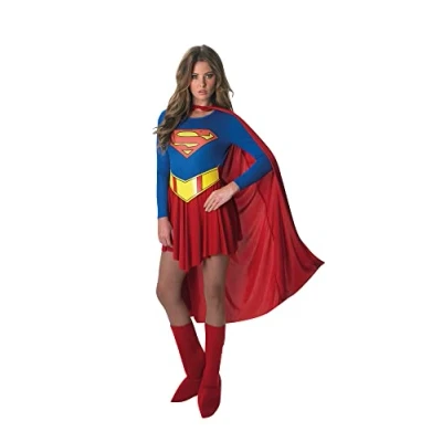 Rubie's DC Comics Character Super Hero Supergirl Ladie's Costume Dress Costume Includes Leotard with Supergirl Printed Logo, Red skirt, Red Cape, Fabric Belt and Fabric Boot Tops Please note that all products will be delivered in full Rubie's Official Branded Packaging Rubie’s Official Licensed product tested to all required European and UK standards, including EN71 and REACH US designed and sized product, please refer to sizing chart image for reference Ideal Dress Up for Themed Parties, Halloween and World Book Day, Manufacturer: Rubie's