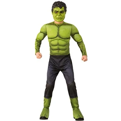 Rubie's Avengers Infinity War Hulk, child costume - small age 3-4, height 117cm Deluxe costume includes 3D muscle chest jumpsuit with boot tops and mask IMPORTANT: US designed and sized product, please refer to sizing chart image for reference Available in Sizes Small 5-6 Years : Height approx 117cm; Waist approx 65cm Medium 7-8 Years : Height approx 132cm; Waist approx 72cm Large 9-12 Years : Height approx 147cm; Waist approx 82cm Rubie’s Official Licensed product tested to all required European and UK standards, including EN71 and REACH Ideal Dress Up for Themed Parties, Halloween and World Book Day, Manufacturer: Rubie's
