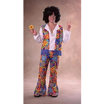 Men's Hippie Fancy Dress Costume Multi Colour Includes fringed vest with attached shirt and bell- bottom pant Male adult, one size Perfect for any fancy dress event, Manufacturer: Rubie's Masquerade UK