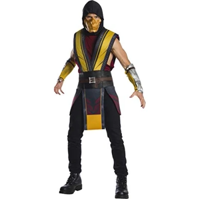 COSTUME INCLUDES: Hooded Top, Belt With Apron, Gauntlets, Mask OFFICIALLY LICENSED: Mortal Kombat Scorpion. THE RIGHT FIT: Men's size standard (up to 44in jacket), when deciding size, please note costumes run smaller than apparel IMPORTANT DETAILS: Adult Scorpion costume includes a hooded costume top, molded belt with attached apron, molded gauntlets, and a molded mask, perfect for creating a striking character look EVERY DAY IS AN OCCASION: Great for Halloween, themed parties, festivals, cosplay events, or anytime, because life is more fun in costume. COSTUME DESTINATION: Rubies aims to spark joy and creativity worldwide as your go-to destination for expertly crafted costumes, accessories, and all celebration needs