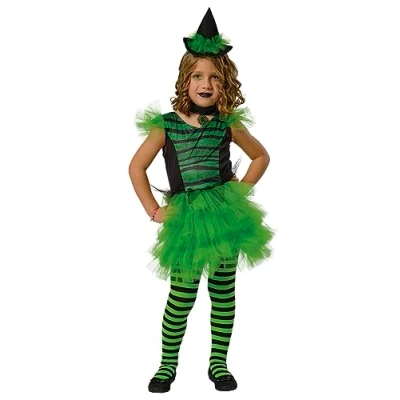 Witches and witches, one of the favorite costumes for girls; optimal for celebrations such as Halloween, Halloween and themed costume parties, with this costume girls can become mighty witches during the darkest night of the year Dress: this elegant glamorous witch costume includes dress in green sleeveless with printed details, and skirt in orange tulle fabric; back velcro closure, properly packaged in hanger bag ACCESSORIES - To complete this glamorous witch costume, the hat, choker and stockings are included and are a must have! For boys and girls ages 3 and up; available for girls and boys size s 3 to 4 years, size m from 5 to 7 years, size l from 8 to 10 years; read the measurement chart in the images; for the safety of children all our costumes are manufactured and validated according to European toy safety regulations Occasions: kids girls costume for celebrating Halloween, Christmas, Carnival, Easter, Prom, Book Day, Children's Day, Cosplay, Party, Festivals, Holiday, Pageant, Wedding, Birthday, School Prom, Photo Shoot, Stage Performance, Ceremony and other occasions, Manufacturer: Rubie’s