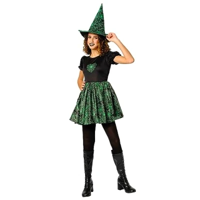 Witches and witches, one of the favorite costumes for girls; optimal for celebrations such as Halloween, Halloween and themed costume parties, with this costume girls can become mighty witches during the darkest night of the year Dress: this daring spiderweb witch costume includes short sleeve dress with digitally printed details in neon green spider web motifs that glow in the dark color; skirt is made of a satin material; with back velcro closure, properly packaged in hanger bag ACCESSORIES - To complete this spiderweb witch costume the hat is included and is a must; in black color and digitally printed details to match the rest of the dress For boys and girls aged 5 and up; available for girls and boys size m from 5 to 7 years, size l from 8 to 10 years and size tw from 11 to 13 years; read the measurement chart in the images; for the safety of children all our costumes are manufactured and validated according to European toy safety regulations Occasions: kids girls costume for celebrating Halloween, Christmas, Carnival, Easter, Prom, Book Day, Children's Day, Cosplay, Party, Festivals, Holiday, Pageant, Wedding, Birthday, School Prom, Photo Shoot, Stage Performance, Ceremony and other occasions, Manufacturer: Rubie’s
