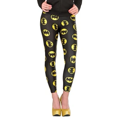 Batgirl leggings fit 5'2" to 5'9" and 90 to 155 pounds; 90% Polyester and 10% Spandex Black with all-over yellow logo print Officially licensed DC Superheroes costume accessory, look for trademark on label and packaging to help assure you've received an authentic safety tested item Part of the DC Comics Superheroes separates line, look for skirts, tops, boy shorts, tights, and more Create your own DC team with Batman, Superman, Wonder Woman, Supergirl, Batgirl, Harley Quinn, Joker, and more - all from Rubie's Costume, Manufacturer: Rubie's Costume Co.