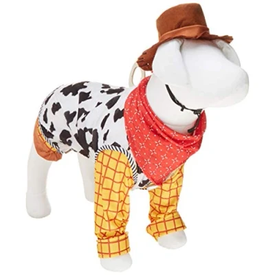 Officially licensed toy story pet costume, look for Disney and Rubie's trademark on label and packaging to help assure you've received authentic safety-tested item Big dog's Woody costume shirt with attached vest, kerchief, and hat Important! Not ALL COSTUMES WILL FIT ALL PETS, consider costume style as well as animal size and shape Read THE RUBIE’S PET SIZE CHART and WATCH THE SIZING INSTRUCTION VIDEO, do not select size based on breed Pet costumes are fun for photos, parades, play dates and more