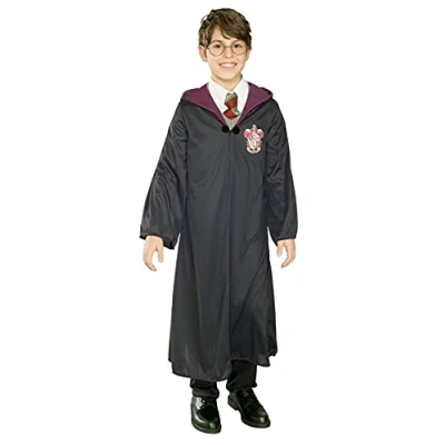 Officially licensed ankle-length Harry Potter hooded robe and clasp Black polyester costume robe has burgundy accents Screen printed Gryffindor House emblem COSTUMES ARE NOT SIZED THE SAME AS CLOTHING, use the Rubie's Child Size Chart, do not pick based on age or clothing size Accessories available separately; Rubies has costumes and accessories in every size and style, Manufacturer: Rubies