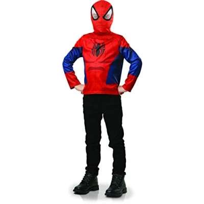 Official Spiderman Costume A printed top with printed sleeves on both sides and Velcro closure on the back Spider-Man mask made of PVC with elastic band and Velcro fasteners for the safety of the child Suitable for children over 3 years old. One size for children from 105 cm to 128 cm, Manufacturer: rubies