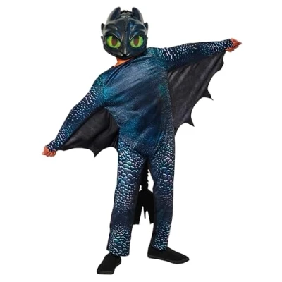 Officially Licensed Rubies How To Train Your Dragon Classic Toothless Child Costume created by Rubies Includes Printed jumpsuit with attached wings and tail and mask Rubie’s Official Licensed product tested to all required European and UK standards, including EN71 and REACH US designed and sized product, please refer to sizing chart image for reference Adequate Dress Up for Themed Parties, Halloween, Gifts and World Book Day, Manufacturer: Rubies