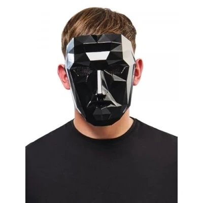 SQUID GAME MASK: Join the guard of Squid Game with this officially licensed triangle guard mask. ONE SIZE FITS MOST - This mask is designed to fit most adults, providing a comfortable fit. AUTHENTIC DESIGN: This official mask is faithful to that of the chef of the game Squid Game/Front Man, with its black color and highly recognizable multi-faceted. ELASTIC ATTACHES: The mask has Velcro fasteners on the back for your comfort and ease of use PERFECT FOR PARTIES - This Official Front Man Squid Game Mask is ideal for costume parties, Halloween, themed birthdays and carnival parades., Manufacturer: Rubies