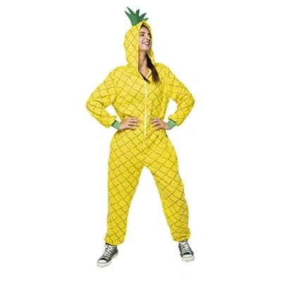 Adult Pineapple Costume for Men and Women one size fits all. A fun full Pineapple jumpsuit. Design Fruit pyjamas ideal not only for dress up in Carnival, but also as a gift, dress up at festivities and/or sleepover with friends. JUMPSUIT: Very comfortable, soft to the touch and warm Pineapple Monkey. Attached hood. Front zip closure. Properly packaged in hanger bag. Made of Polyester material and Designed in Spain. Available in several models: Strawberry Costume, Watermelon Costume, Strawberry Costume. For men and women aged 18 and up. One Size Read the measurement chart in the pictures. Occasions: costume for boys and girls to celebrate Halloween, Christmas, Carnival, Easter, Dances, Book Day, Children's Day, Cosplay, Party, Festivals, Holidays, Contest, Wedding, Birthday, School Dance, Photoshoot, Stage Performances, Ceremonies and Other Occasions., Manufacturer: Rubie's