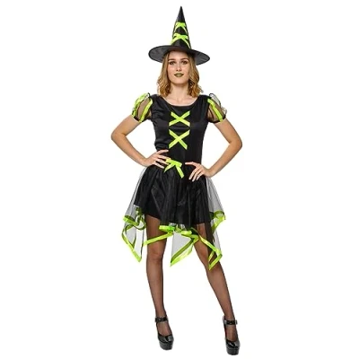 Witches and witches, one of the favorite costumes for women; optimal for celebrations such as Halloween, Halloween and themed costume parties, with this costume girls can become mighty witches during the darkest night of the year Dress: this witch costume for women includes short sleeve dress in black with details; bodice with ties and skirt with tulle overlay; back hook and loop closure for easy donning Hat: To complete the costume, the hat is included and is a must have For men, women, adults ages 18 and up; read measurement chart in images Occasions: kids girls costume accessory or accessory to celebrate Halloween, Christmas, Carnival, Easter, Prom, Book Day, Children's Day, Cosplay, Party, Festivals, Holiday, Pageant, Wedding, Birthday, School Prom, Photo Shoot, Stage Performance, Ceremony and other occasions, Manufacturer: Rubies