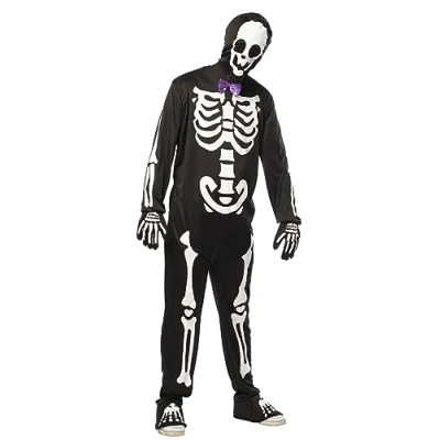 Skeletons, one of the costumes preferred by men and women, this authentic skeleton costume is an original product of rubies, one of the most ifames costumes for Halloween, the darkest night of the year! Jumpsuit: this costume includes digitally printed jumpsuit with skeleton motifs and glow-in-the-dark effect; with attached purple bow tie, mask and gloves; back hook and loop closure for easy donning Accessory: To complete the costume gloves are included For men, women, adults ages 18 and up; read measurement chart in images Occasions: kids girls costume accessory or accessory to celebrate Halloween, Christmas, Carnival, Easter, Prom, Book Day, Children's Day, Cosplay, Party, Festivals, Holiday, Pageant, Wedding, Birthday, School Prom, Photo Shoot, Stage Performance, Ceremony and other occasions, Manufacturer: Rubies