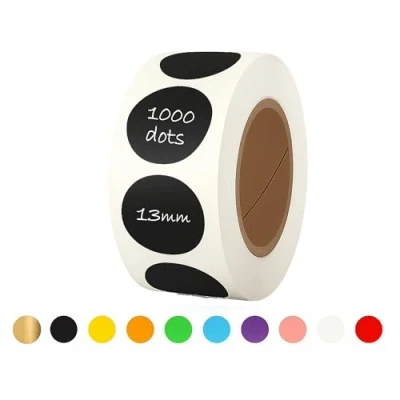 Versatile Round Stickers – 13mm diameter small round stickers perfect for colour coding, price labelling, classroom activities, crafts, and filing. Includes popular choices like red dot stickers, green dot stickers, and black circle stickers. 10 Bright Colours – 1000 Stickers Per Pack - Includes black, red, fluorescent green, orange, fluorescent yellow, white, blue, pink, purple, and gold. whether you're using red dot stickers for marking, white dot stickers for labelling, or colourful dots for crafts – this roll has you covered. Splash-Resistant Surface for Everyday Use - Made from durable semi gloss material with a light splash-resistant coating, making them more robust than standard paper dots. Ideal for environments like kitchens, warehouses, and classrooms where things can get messy. Easy to Peel & Apply – Designed for quick and hassle-free application. These price stickers remove cleanly from most surfaces, making them perfect for both short and long term use. No curling or peeling off Supplied on a Roll – Tidy, Efficient & Easy to Use - Unlike loose sheets, the roll format allows for quick, one-at-a-time dispensing. Keeps your workspace tidy, prevents stickers from sticking to each other, and makes storage neat and hassle-free.