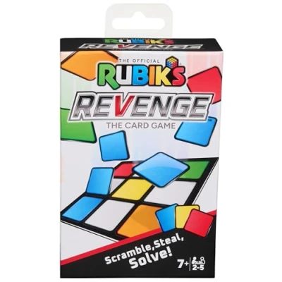 Multiplayer Card Game: Scramble, steal & solve your way to victory in this card game based on the iconic Official Rubik’s Cube. Add some colorful Revenge to family game night with a Rubik’s twist. Fun Family Board Game: Be the first to “solve” your side of the Cube to win. Draw color cards, then strategically keep or discard them as you try to fill up your Rubik’s board with just one color. Add a Twist to Gameplay: Special action cards give you a boost & allow you steal color cards from your opponents’ boards, draw from the discard pile, peek & take, & more. For 2-5 players, ages 7+. What’s Your Next Move: Love the challenge of the Revenge Card Game? Take on the original 3x3 Rubik’s Cube or add to your collection with other games from Rubik’s Cube: Gridlock, Race Ace Game, & more. Includes: 110 Cards, 5 Rubik’s Boards, 5 Player Aid Cards, Instructions, Manufacturer: Spin Master