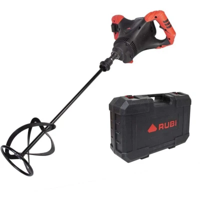 General description The RUBI RUBIMIX-9 POWER MAX Electric Mixer is designed for mixing large quantities of materials, including cementitious adhesives, paints, and resins. It features a 2-speed mechanical gearbox that allows users to select the appropriate speed for their specific task, with an electronic controller for speed adjustment at any time. Safety is prioritized with a switch lock to prevent accidental starts and a SOFT START system that ensures a gradual start to minimize the risk of injury. The mixer is equipped with a bi-material double handle for enhanced comfort and stability. Additionally, the RUBIMIX-9 POWER MAX includes RUBI's exclusive FAST-IN system for quick and tool-free mixing rod changes, reducing downtime. Technical specifications Input Power: 2,100 Watt No Load Speed: 490-880/min Mixing Paddle Diameter: 140mm Maximum Mixing Rod Diameter: 160mm Weight: 7.5kg Usage Can mix up to 40kg of material with the standard 140mm diameter mixing rod. Can mix up to 60kg of