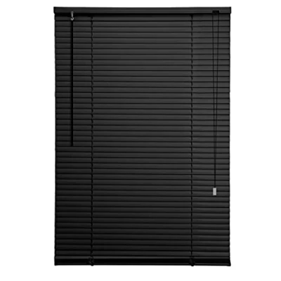 Ruby Deals PVC Venetian Blind Blinds Window 25mm Thin Slats Trimmable Treatments Easy Fit Curtains with Metal Headrail & Fittings Home Office(Black 225W x 213H cm)