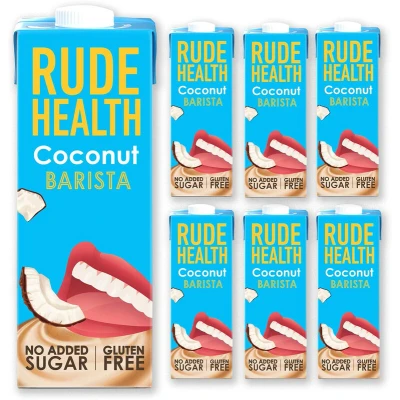 Rude Health 6 x 1 Litre Coconut Barista Drink, Dairy Free, 100% Natural No Added Sugar, Healthy & Vegan Milk, Lactose Free Additives, Gluten Recyclable Packaging