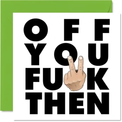 MAKE THEM LAUGH WITH THIS FUNNY LEAVING CARD: This exceptional quality good luck gifts card for her or him shows the design "Off You F*ck Then". If you are looking for funny leaving cards for women, then then this leaving cards for colleagues is bound to make them laugh. Not just for sorry your leaving cards for women this could also be for Work Colleague, Best Friend, Boss, or Manager. WHAT DO YOU GET: The card is printed on one side and BLANK ON THE INSIDE to allow you to write your very own message. The unique fun design is printed on a specially sourced and environmentally responsible board. At 360 microns thick the natural white one-sided gloss board has a quality look and feel. Supplied with a coloured gummed envelope to complement the design and ready to be sealed and sent in the post. New job gifts, sorry your leaving gifts, graduation card. NO INK SMUDGES: There is nothing worse than writing inside a card to find that the shiny surface makes the ink smudge. This is why we use a high quality one sided coated board. The uncoated side will absorb more of the ink from your pen to make smudging a thing of the past. Leaving presents for colleagues, new job gifts for women, good luck cards. SIZES: Greeting Card = 145mm x 145mm, Envelope = 155mm x 155mm, Card Thickness = 360 micron. Great friend leaving cards from bestfriend. Special friend leaving cards for her, congratulations on your new job, leaving gifts for men, new job card for women, sorry youre leaving card, leaving present ideas, new job cards for men. MADE AND QUALITY CHECKED IN THE UK: We print and manufacture all our product right her in the UK so you can be sure of a fast turnaround and a product that is expertly made. Using environmentally responsible premium board our card is conscious of the responsible management of the world's forests - good luck in your new job gifts, goodbye cards, funny leaving gifts for colleagues.