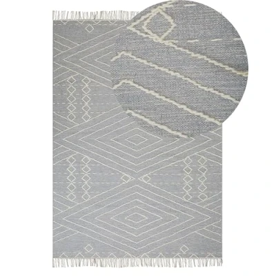 Rectangular Cotton Rug with Tassels. Add an eye-catching accent to your living room or bedroom, which at the same time will create a cosy atmosphere. This handmade rug is crafted from high-quality cotton as well as wool for durability. The geometric pattern and tassels boost the oriental feel of the piece that will nicely work with boho interiors. Details: Product Type: Low Pile General Color: Grey, White Shade: Light Grey Material Type: Fabric Main Material: Cotton Additional Material: Wool Material Composition: 30% Wool Shape: Rectangular Anti-Slip Bottom: No GSM: 1770 g/m2 Pattern: Geometric Pattern Weaving: Handwoven Dimensions: Pile Height: 1 cm Width: 80 cm Length: 150 cm Weight: 1.9 kg Offer Includes: 1 x Rug Key Features: Hand-Crafted with High Attention to Detail, Suitable for Underfloor Heating, Creates a Cosy Atmosphere, Eye-Catching Accent Piece, High-Quality Materials, Precise Finish, Soft Fibres for a Pleasant Feel Assembly Information: Does Not Require Assembly