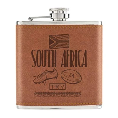 Rugby South Africa 6oz PU Leather Hip Flask Tan