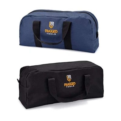 INCLUDES TWO TOTE STYLE TOOL BAGS - Includes a small bag for small parts and supplies and a large bag for larger hand tools. EASY TO CARRY - Strong web carrying handles make both tote bags easy to lug around. SMALL BAG: 12" X 4.25" X 5.25" MEDIUM BAG: 14" X 5.5" X 5.75" BACKED BY THE RUGGED TOOLS 100% SATISFACTION GUARANTEE – If you are not satisfied with you Rugged Tools purchase for any reason, please contact us, and we’ll make it right.