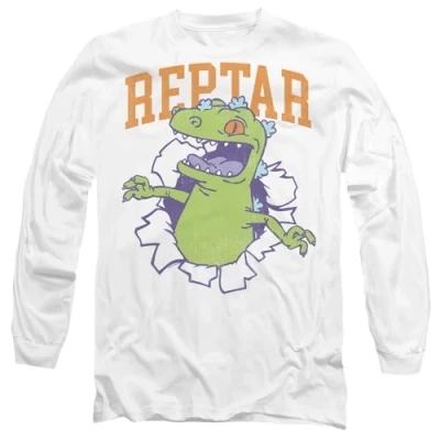 Rugrats Reptar, Rip Mens Long Sleeve T Shirt, White, S