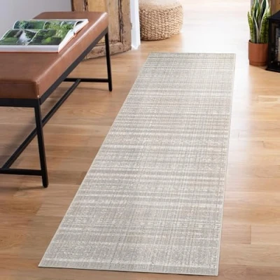 Rugs by Desire Maia Washable Living Room Area Rug Soft Polypropylene Weaving, Low Pile, Non Slip Cotton Backing for Elegant Indoor Spaces, Beige, 60 x 220 cm (Rectangular)