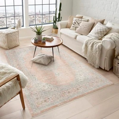 Rugs by Desire Maia Washable Living Room Area Rug Soft Polypropylene Weaving, Low Pile, Non Slip Cotton Backing for Elegant Indoor Spaces, Coral, 120 x 180 cm (Rectangular)