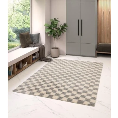 Shaggy rug: Shaggy interior rug which is characterised by its thickness of 30 mm, which makes it extremely comfortable and soft to the touch Contemporary style: a must-have decorative rug thanks to its trendy tiles and bright colours Care instructions: This rug is fade resistant. Vacuum regularly. Place a damp cloth on the stain and sponge, do not rub Technical features: 100% polypropylene for a soft and voluminous texture, thickness 30 mm, rug that does not lint and very easy to remove Scope of delivery: Shaggy Checkerboard Rug, Rectangular Indoor Rug for Living Room or Bedroom, Soft and Comfortable, Easy Care, Thickness 30 mm, Polypropylene, 120 x 170 cm, Grey