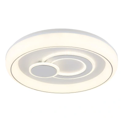 The RUIZ ceiling light impresses with its modern design and high-quality materials. The body made of white, matt metal harmonizes perfectly with the shade made of opal acrylic and plastic, which ensures even light distribution. Two chrome rings add elegant accents and give the lamp a special touch. With a memory function you can save your preferred light setting and recall it at any time. The RUIZ ceiling light offers a flexible color temperature from 2700K to 6000K, allowing you to adjust the lighting depending on your mood or needs. With a diameter of 480 mm and a lumen output of 3450 lumens, it provides bright and pleasant illumination in every room. Including energy-efficient LED technology, the light not only offers a stylish but also an environmentally friendly lighting solution. Product features: Ceiling light metal white matt, acrylic opal, plastic opal, chrome ring, many steps wall switch, color fixing, memory function, ø: 480mm, h: 75mm, incl. led 48w 230v, 6024lm source,