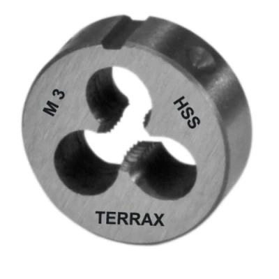Completely made of high alloy steel HSS tool. For metric thread M3 x 0.5 mm according to DIN ISO 13 The thread is cut in one operation. For cutting an external thread, the workpiece must already have the nominal diameter of the desired thread. The die is attached and rotated until the desired length of thread is reached., Manufacturer: Ruko