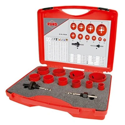 Ruko HSS Bi Metal Hole Saw Set in Plastic Case, Red Finish, 12 Pieces, R106304